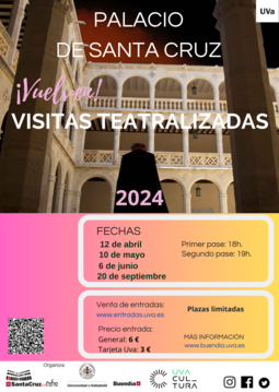 Un año más la Universidad de Valladolid oferta estas visitas teatralizadas que pretenden acercar al visitante la arquitectura, historia y arte que contiene este edificio. Todo ello a través del encuentro de los visitantes con los personajes históricos que lo habitaron a lo largo de los siglos. Una enigmática dama cuyo misterio acompañará a la visita. Una ocasión inmejorable para conocer y disfrutar de uno de los edificios emblemáticos de nuestra ciudad.